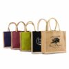 This cotton jute combination bag has a front pocket, a jute gusset and a long rope handles. It is perfect for gifts, giveaways and shopping small items. It is very strong, durable, ecofriendly and sustainable for the environment.